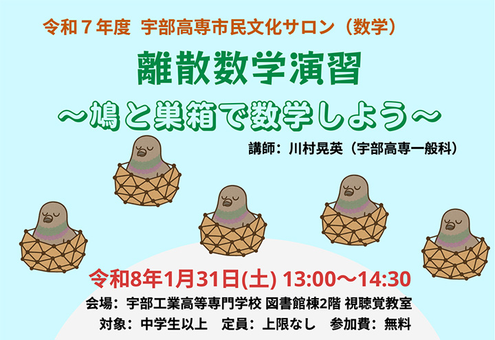市民文化サロン「離散数学演習~鳩と巣箱で数学しよう~」受講者募集