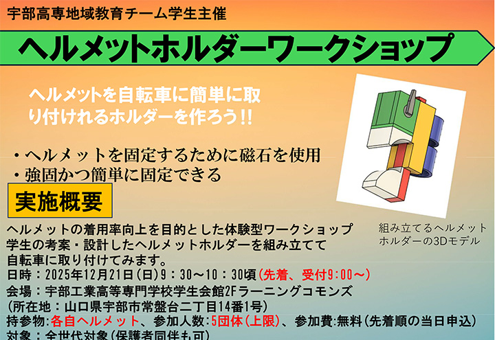 <地域課題解決型 地域教育>ヘルメットホルダーワークショップを12月21日(日)に開催します