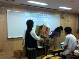 授業で行われたゲームは、架空の自動車、スーパーや衣料品の3社の業績や株価 の変動を予測して株式を売買し、手持ちの株式と現金が一番多い人が優勝する ルールで、実際の新聞記事も交えて解説を加えながら進行しました。学生たちは、1人200万円を元手に4~5人ずつの8班に分かれ て、「所得税の大幅な減税」、「世界的な金融危機発生」など出題される経済 ニュースに一喜一憂しながら熱心に取引を行いました。