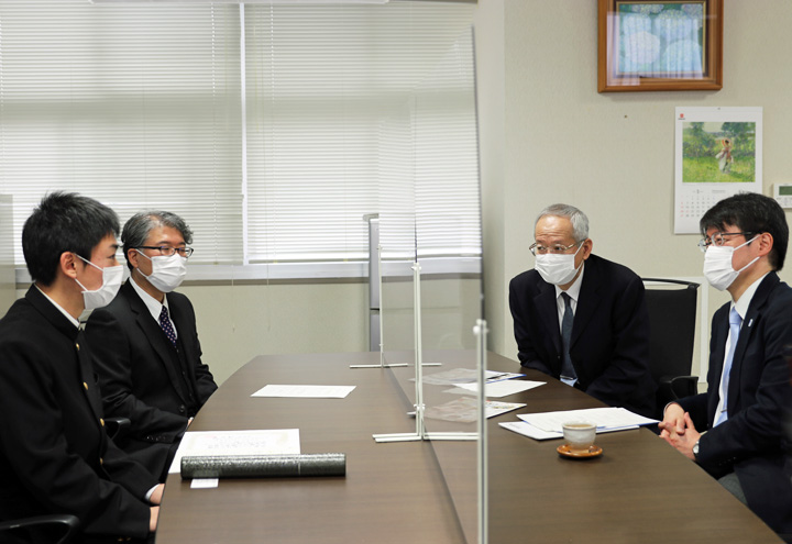 続いて行われた懇談では、前田さんから、クラスメイトたちと声をかけ合って応募を思い立ったこと、自身の知見をいかして「KOSEN」を使ったキャッチフレーズを考えたこと、さらには将来の目標などの話があり、出席した教職員一同感心していました。