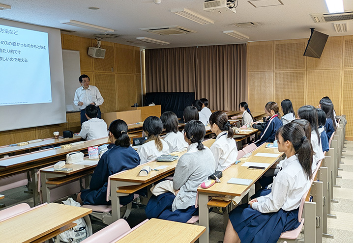 本校では、キャリア教育の一環として、3年生に対して県外の工場見学旅行を実施しています。この期間を利用して、3年生以外の学生に対してもキャリア教育を行おうと、新たなキャリア教育イベントを企画しました。イベントは、令和7年10月8日(水)、9日(木)の二日間にわたり、1日目は学内で様々な企業による講話、2日目は県内企業の見学会を実施しました。