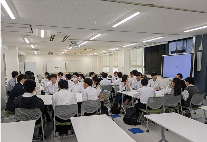 2年生に対しては、一般社団法人 エッジソン・マネジメント協会(事務局:株式会社リンクアンドモチベーション外部リンク)に調整していただき、各社で働くエンジニアの方々にお越しいただき、仕事のやりがいについての講話や、小グループに分かれて座談会をしていただきました。座談会では、本校の学生が不安に感じていることなどを積極的に質問をして、エンジニアの方々に丁寧に回答していただきました。学生が前向きになるきっかけを得る場となりました。