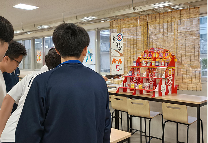 ![]() 射的を楽しむ学生 | ![]() クレープを作る様子 |