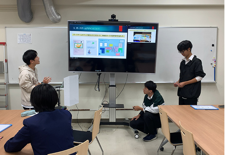本プロジェクトは、高専の留学生が日本での生活で必要となる知識を学ぶためのボードゲームの開発を目的として、2021年に宇部高専と津山高専の学生が合同チームを作り、異なる教材を考案してきました。最終発表では、コンペ形式で優秀な作品を選び製品化してきました。2025年度からは広島商船高専と合同でプロジェクトを行っています。