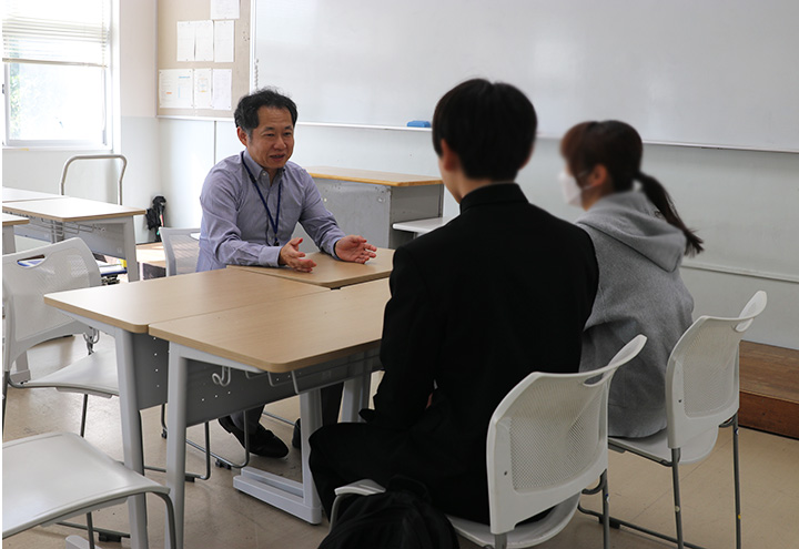 また、留学交流室による懇談ブースでは、本校に来校している留学生との交流や在学生が実際に留学した際の体験談の紹介を通して、国際交流の魅力を伝えました。