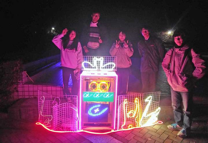 令和7年11月23日(日)、自主活動グループ電気工学科E-ProjectのTOKIWAファンタジアチーム(チームリーダー2E千葉さん)が、昨年に引き続きTOKIWAファンタジア2025の市民展示にイルミネーション作品を展示しました。