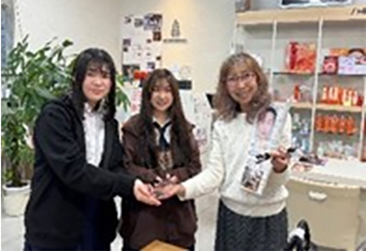 令和7年11月25日(火)、地域教育で地域の課題解決に取り組む学生が、やなぎだ化粧品店に、開発したオリジナルデザインの”眉スケール”11個を納品しました。