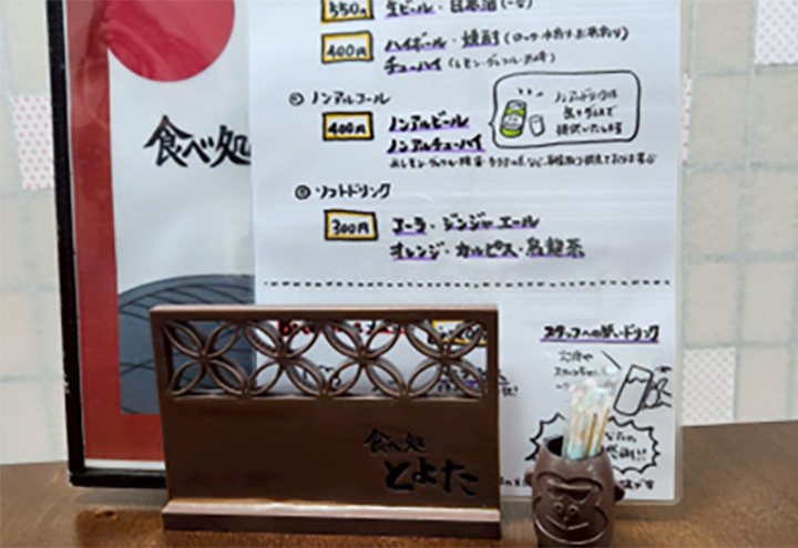 メニュー表立て上部には、円満・ご縁・発展などの意味を持つ「七宝繋ぎ」の模様を取り入れています |