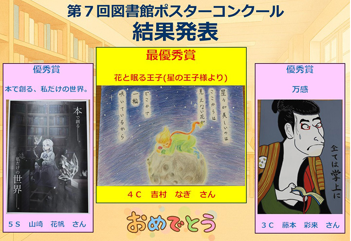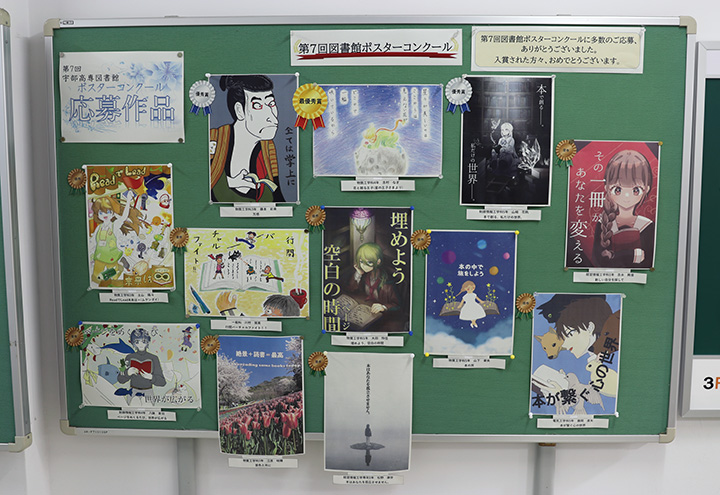 宇部高専図書館では、読書や学習における図書館利用をテーマにしたポスターを募集し、学生の図書館への関心を高める取り組みとして、令和元年度より「図書館ポスターコンクール」を実施しています。今年で第7回目を迎えました。