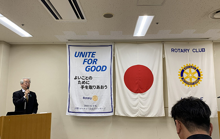 報告会の最後には、清水昭彦宇部ロータリークラブ会長から2人の活動に対して称賛と激励の言葉が贈られるとともに、学生が成長する様々な環境を提供する宇部高専の教育システムを高く評価していただきました。