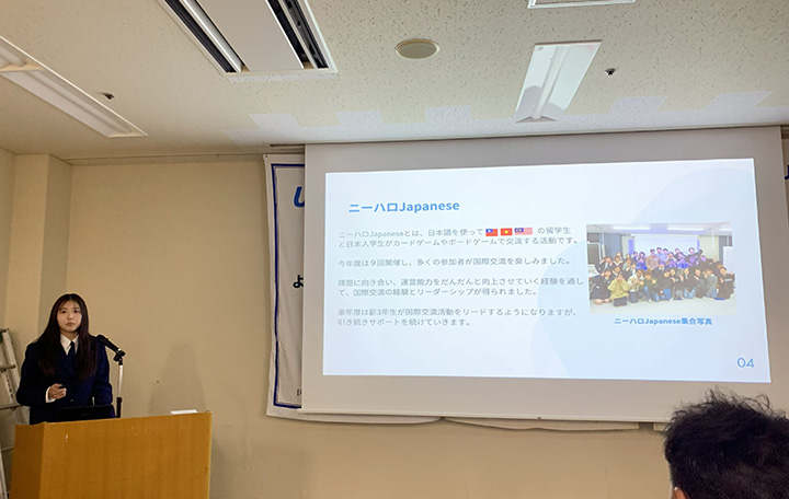 国際交流活動の報告を行う大島一華さん