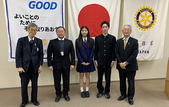 令和8年3月12日(木)、宇部興産ビルで開催された宇部ロータリークラブ例会にて、令和7年度の宇部高専グローバルマイスターの学生2名が報告を行いました。
