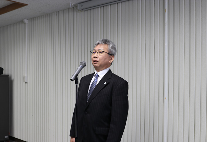 続いて、令和8年4月1日付で、川村校長が本校校長として着任されました。川村校長は、平成22年に釧路工業高等専門学校准教授として採用され、平成26年に教授へ昇任されました。同校では、研究企画室長、副校長(教務主事)、国際交流室長、自己点検評価委員長などの要職を歴任され、学校運営に大きく寄与してこられました。着任式では、本校がこれまで進めてきた先進的な取り組みとして、4学期制の早期導入、活発な課外活動、充実したグローバル教育、さらにはプロジェクト学習など学生の自主性を育む教育について高く評価されました。その上で、「これまでの実践を大切にしながら、時代の変化に取り残されることなく、常に挑戦し続ける学校でありたい」との決意が語られ、「皆さんと共に、宇部高専のさらなる発展に取り組んでいきましょう」と挨拶されました。