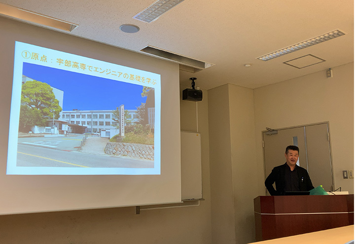 講師には、機械工学科卒業生である石川英樹氏をお迎えし、世界35カ国にわたって活躍された経験から世界での苦難や学び、世界で通じる力についてお話いただきました。