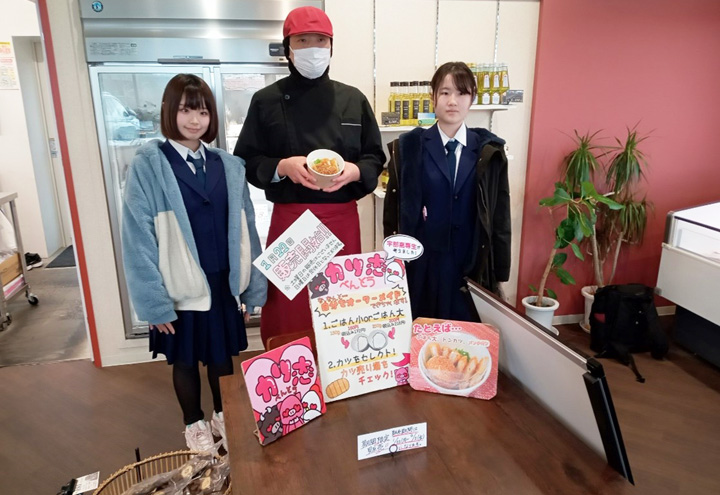 令和6年1月22日(月)、地域課題解決型PBL「地域教育」でフードロス削減に取り組むチーム「桜リサーチ隊」と宇部市内食肉販売店「肉ヤ喜久輪」が開発した食べ残しが生じないオーダー型の弁当「カツ恋弁当」が期間限定で販売されました。
